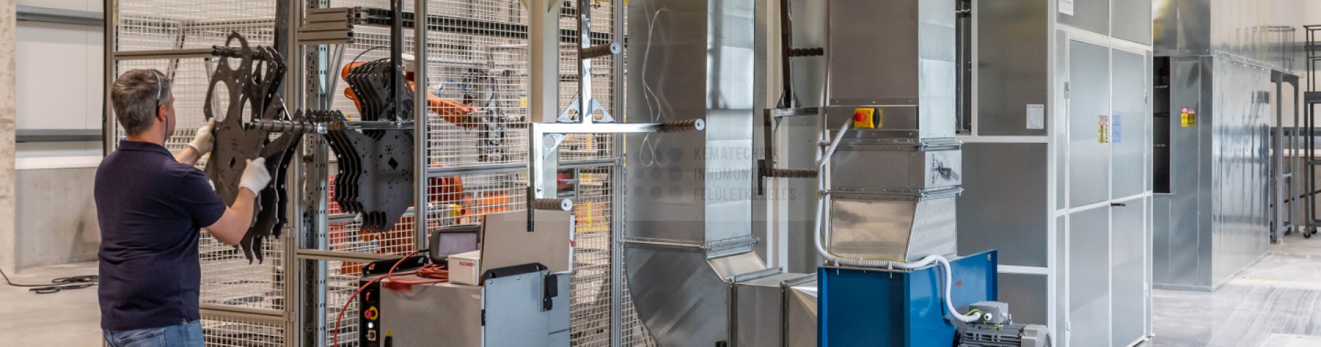 A munkadarabokat robot pakolja fel a felsőpályás konvejoron elhelyezett függesztékekre. A munkadarabok a takt üzemben működő anyagmozgató rendszeren mozogva először a bevonatoló kabinba kerülnek, ahol egy speciális emelőkád segítségével meg történik a mártó bevonatolás. Az emelés és süllyesztés sebessége receptek szerint változtatható.